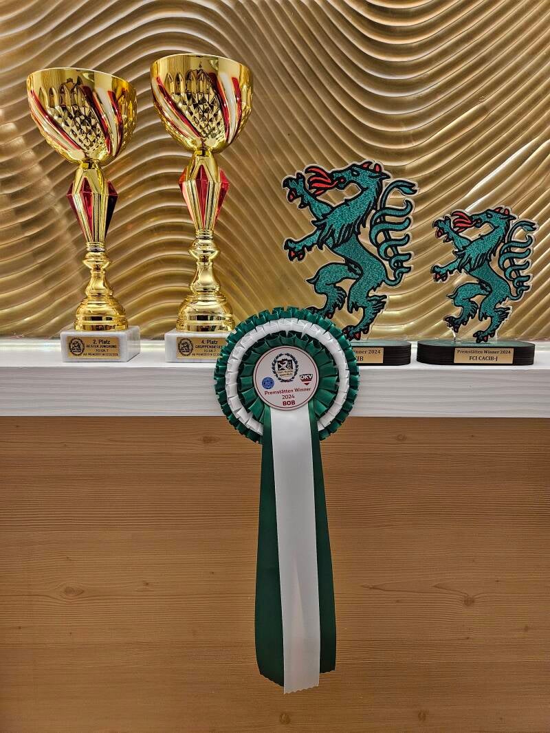 Er wurde mit Vorzüglich 1, Jugendbester und BOB (Best of Breed) bewertet. Im Ehrenring konnte er den 3. Platz in der FCI Gruppe 7 erreichen.