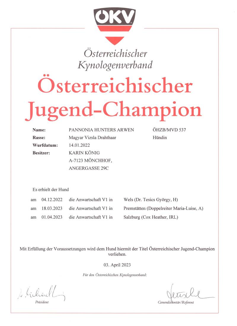 Somit hat Mokus alle Anforderungen für den österr. Jugend Champion erfüllt!