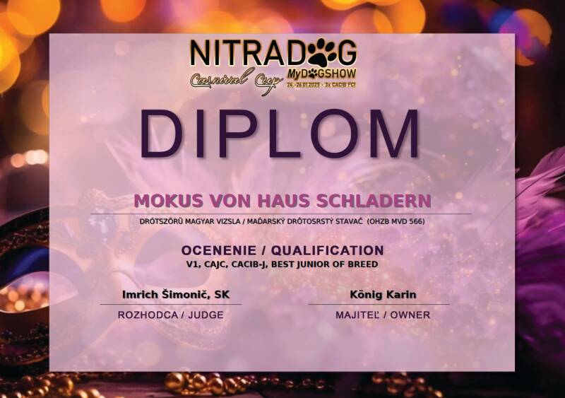 Gestern und heute sind wir nach Nitra in der Slowakei zur Nitradog Christmas Show gefahren. Mokus wurde an beiden Tagen wie folgt bewertet: