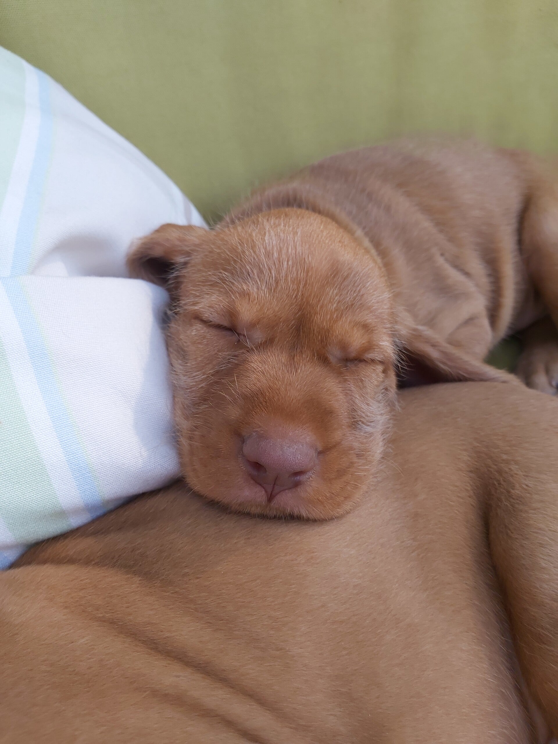 | Pannonia Hunters Brunhild | Hündin | F/F, L/L, HUU frei (getestet) | weinrot | ||